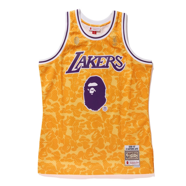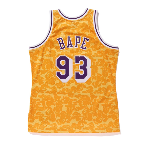 New Bape x Mitchell & Ness Lakers #93 Basketball Swingman Jersey Yellow